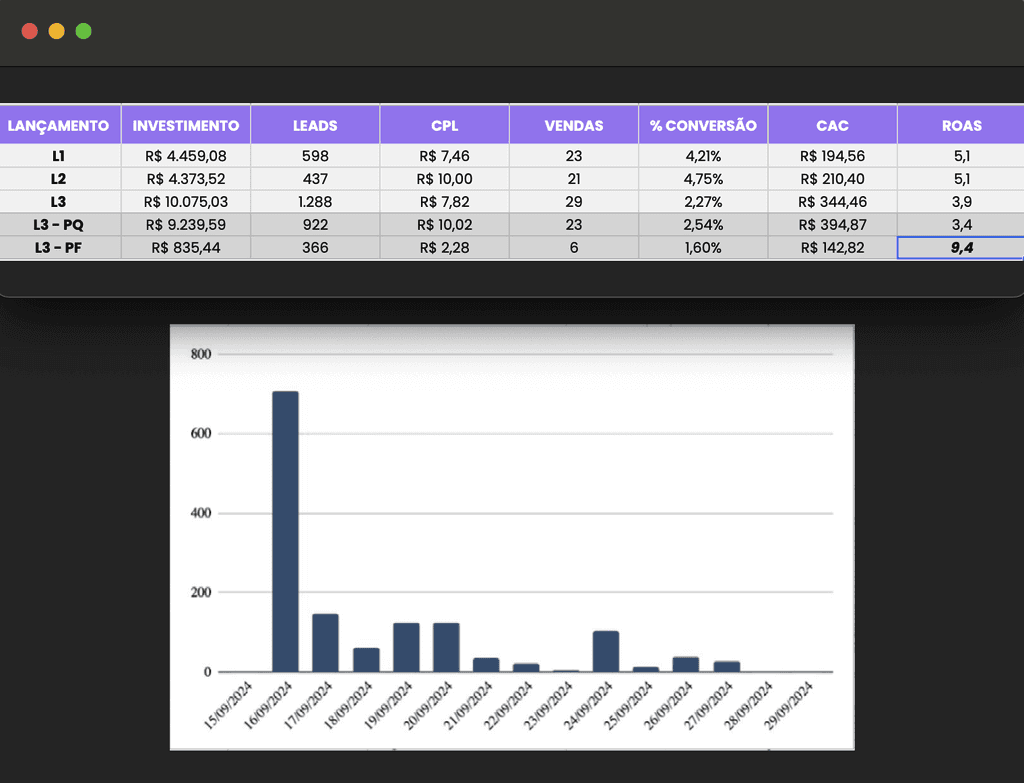 Após ultrapassar R$ 1 milhão em faturamento nos primeiros dias de carrinho aberto, muitos parariam por aí. Escalamos com um investimento adicional de R$ 117 mil, dobramos o faturamento e atingimos a marca dos R$ 2 milhões