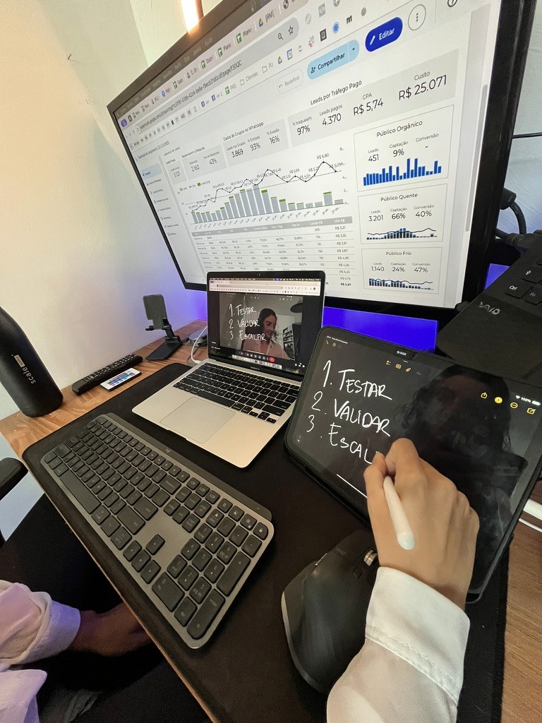 A partir da terceira fase, escalamos com segurança e tráfego qualificado — com decisões baseadas em dados, não em feeling.