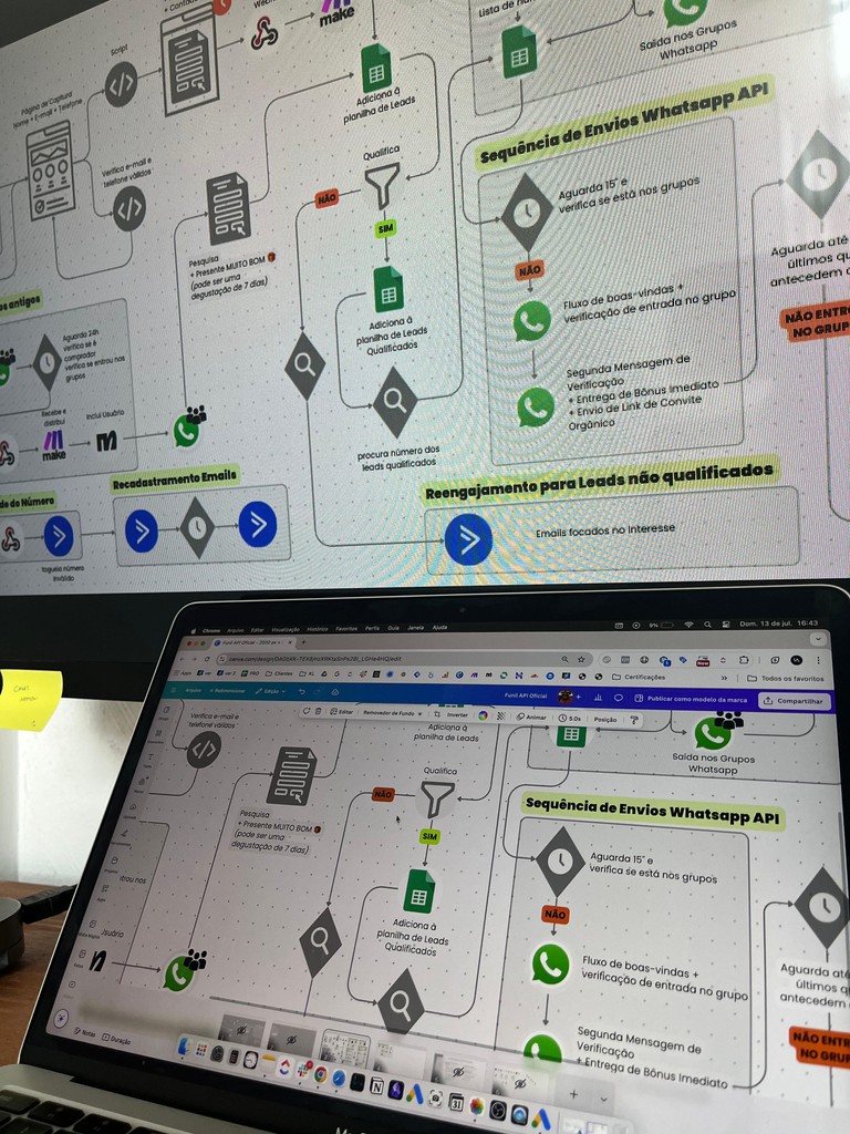 Nossos fluxos não disparam mensagens: iniciam diálogos. Com dados comportamentais, criamos jornadas automatizadas que aquecem, qualificam e vendem.